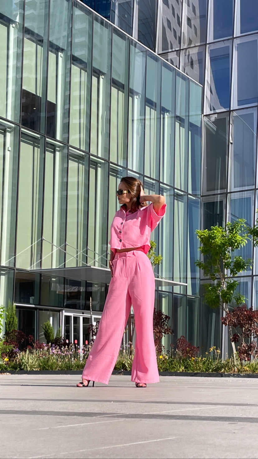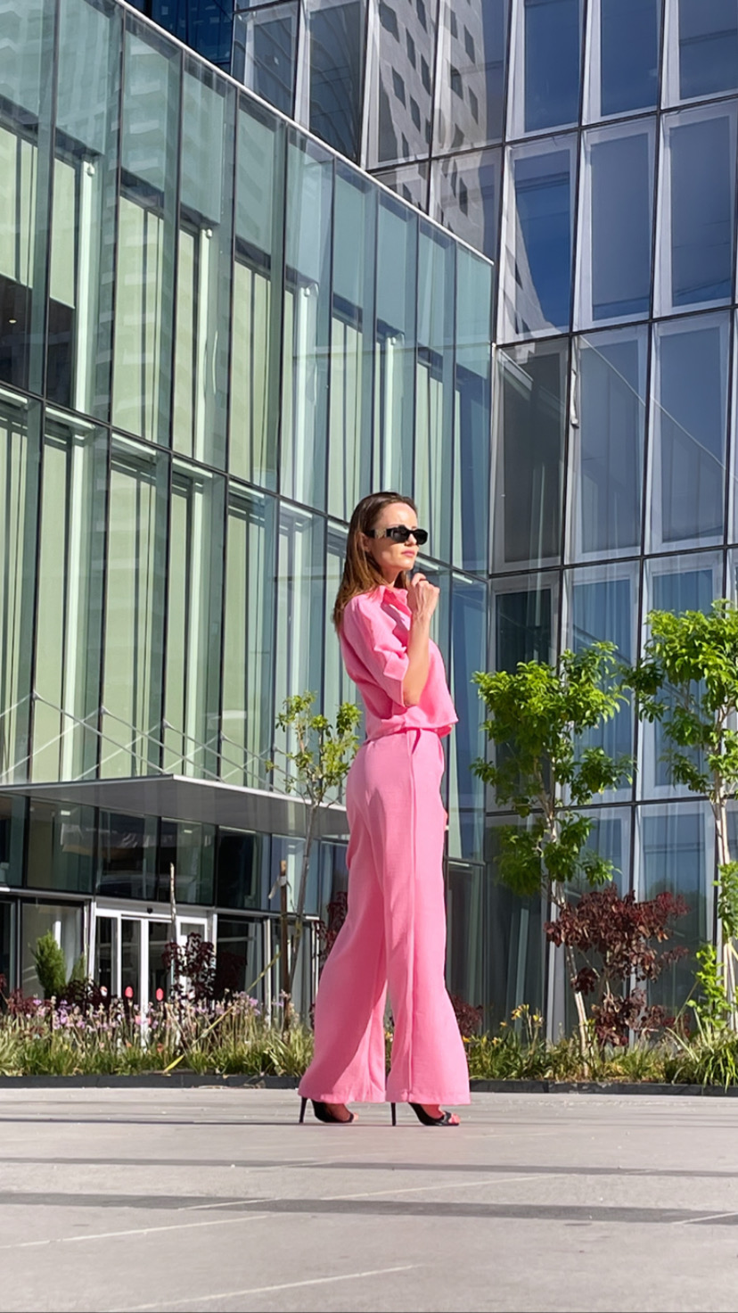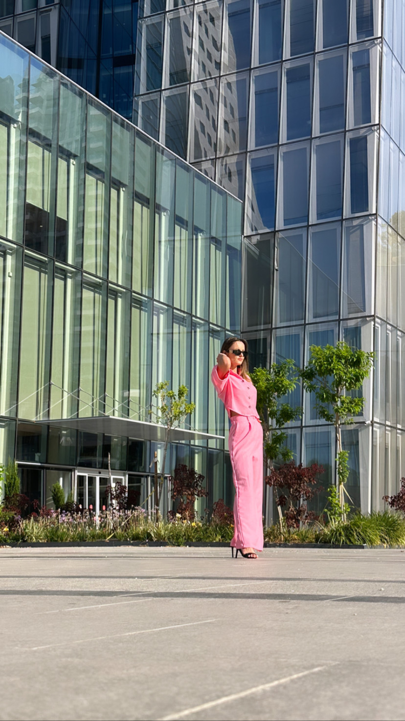 Simte-te rafinată și feminină cu outfit-ul QUARTZ în nuanțe delicate de roz pal.